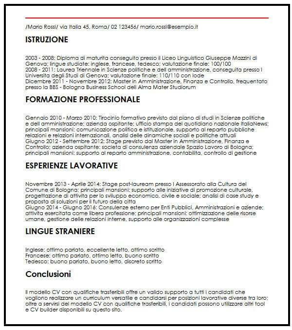 Lettera di accompagnamento - Modello Curriculum Per scrivere la lettera di presentazione da accompagnare al curriculum è importante conoscere alcune regole. Se il CV è senza esperienze di lavoro precedenti conviene dare importanza agli studi, alle mobilià all'estero e alle lingue. È importante scrivere un'ottima lettera di accompagnamento per trovare lavoro. Continua a leggere [+] Lettera di accompagnamento cv 2022: esempio, consigli ... In questa guida completa sulla lettera di accompagnamento cv, detta anche lettera di presentazione o lettera motivazionale, ti spiego cos'è e a cosa serve, cosa scrivere, ti fornisco un esempio fac simile da cui trarre spunto e infine trovi alcuni consigli utili da tenere sempre a mente per una lettera di presentazione perfetta.